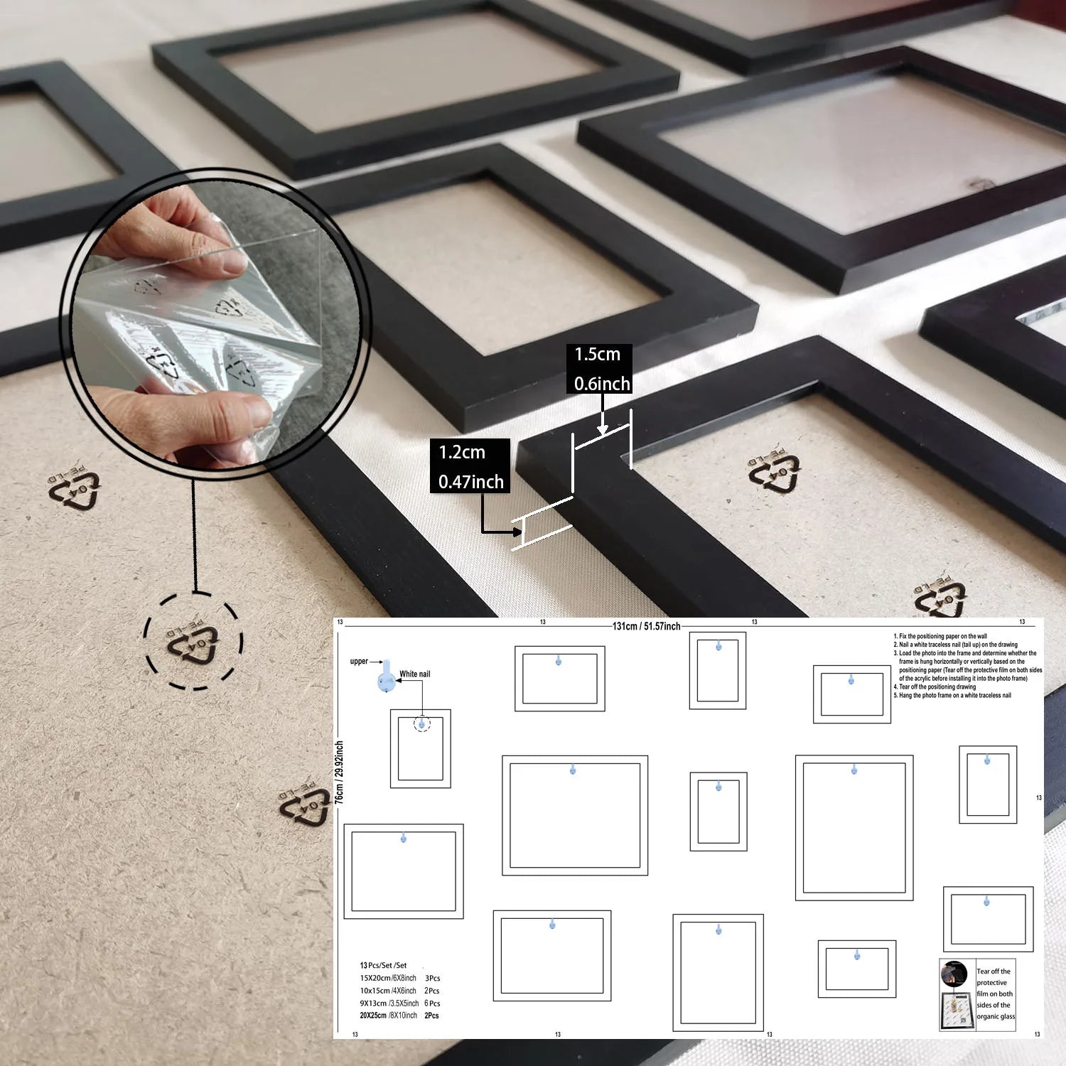 13-Piece Set: Multiple frame sizes for creative photo arrangements.