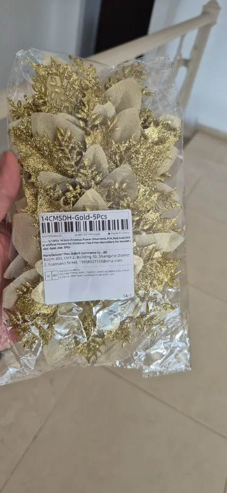 Beautiful glittery Christmas flower ornaments available in pink, red, and gold. Perfect for decorating Christmas trees, wreaths, garlands, and festive home displays.