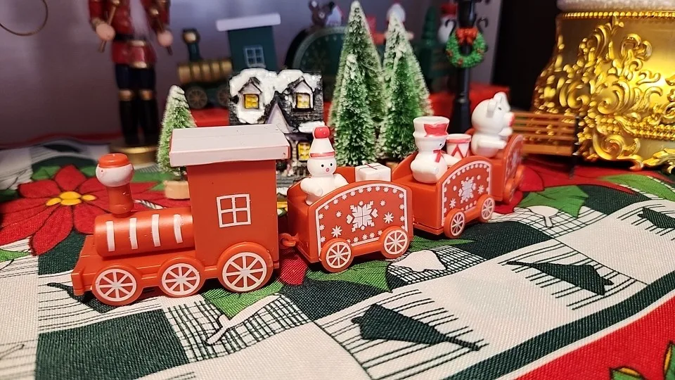A charming Christmas train decoration perfect for adding festive cheer to your home. Ideal for Christmas, New Year, and holiday celebrations, this ornament enhances your décor with classic holiday charm.